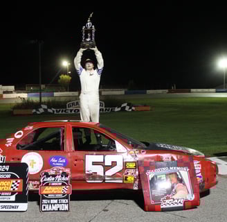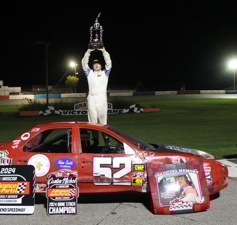 Thanks to the unwavering support of our sponsors, friends, and family, Carter was able to achieve his goal of winning the 2024 Nascar Advanced Autoparts weekly series Championship.